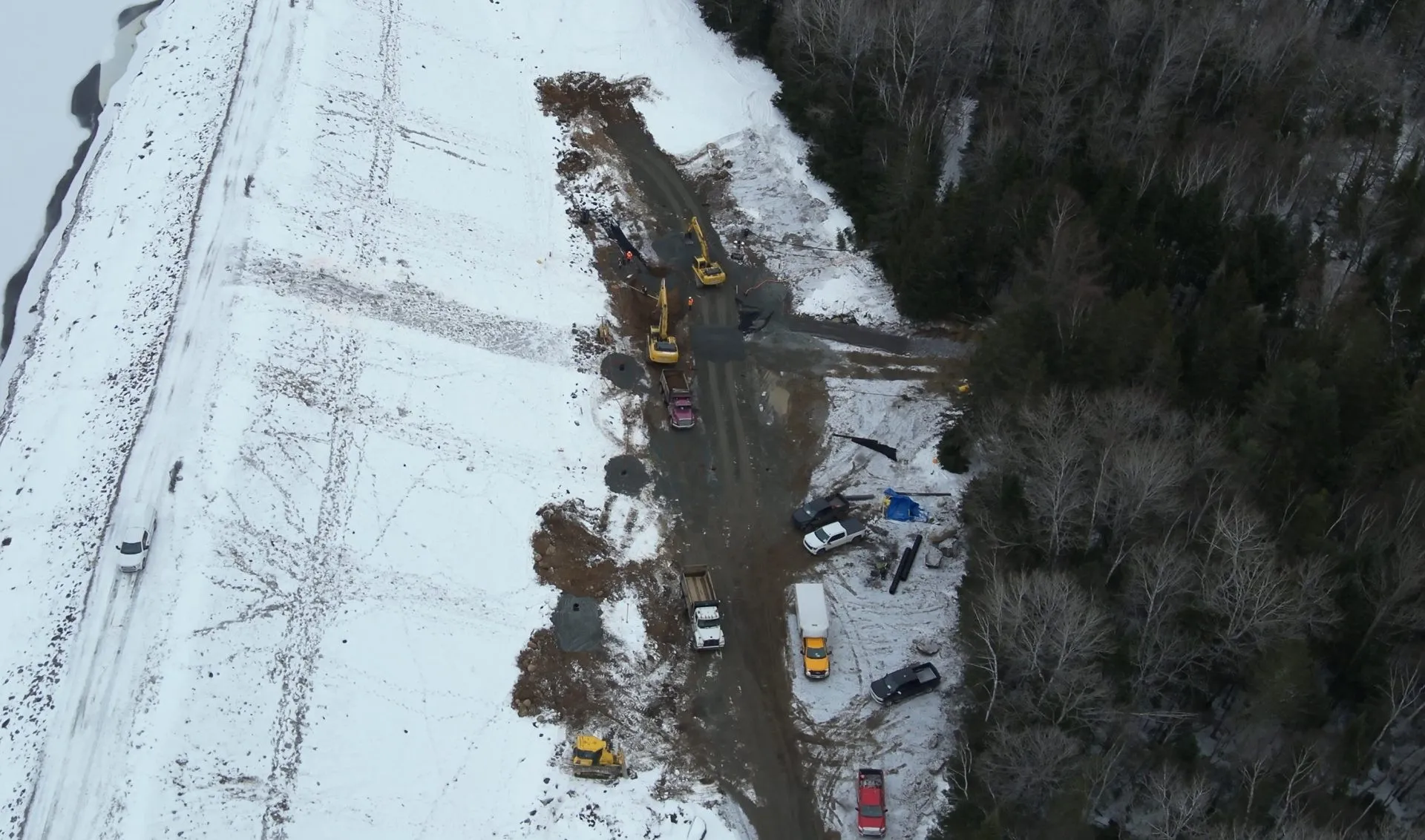 Les travaux des tranchées de drainage se sont terminés le 13 décembre, mais d’autres travaux s’effectueront encore une semaine afin de finaliser des protections au niveau de tranchées tout en poursuivant les efforts pour la stabilité et la sécurité de la digue. La surveillance se poursuivra au quotidien pendant encore un certain temps, autant pour le visuel et la lecture des piézomètres. Des travaux consistent à mettre du granulaire sur les tranchées et au cours des prochains mois, il y aura des prélèvements géophysiques de la structure.