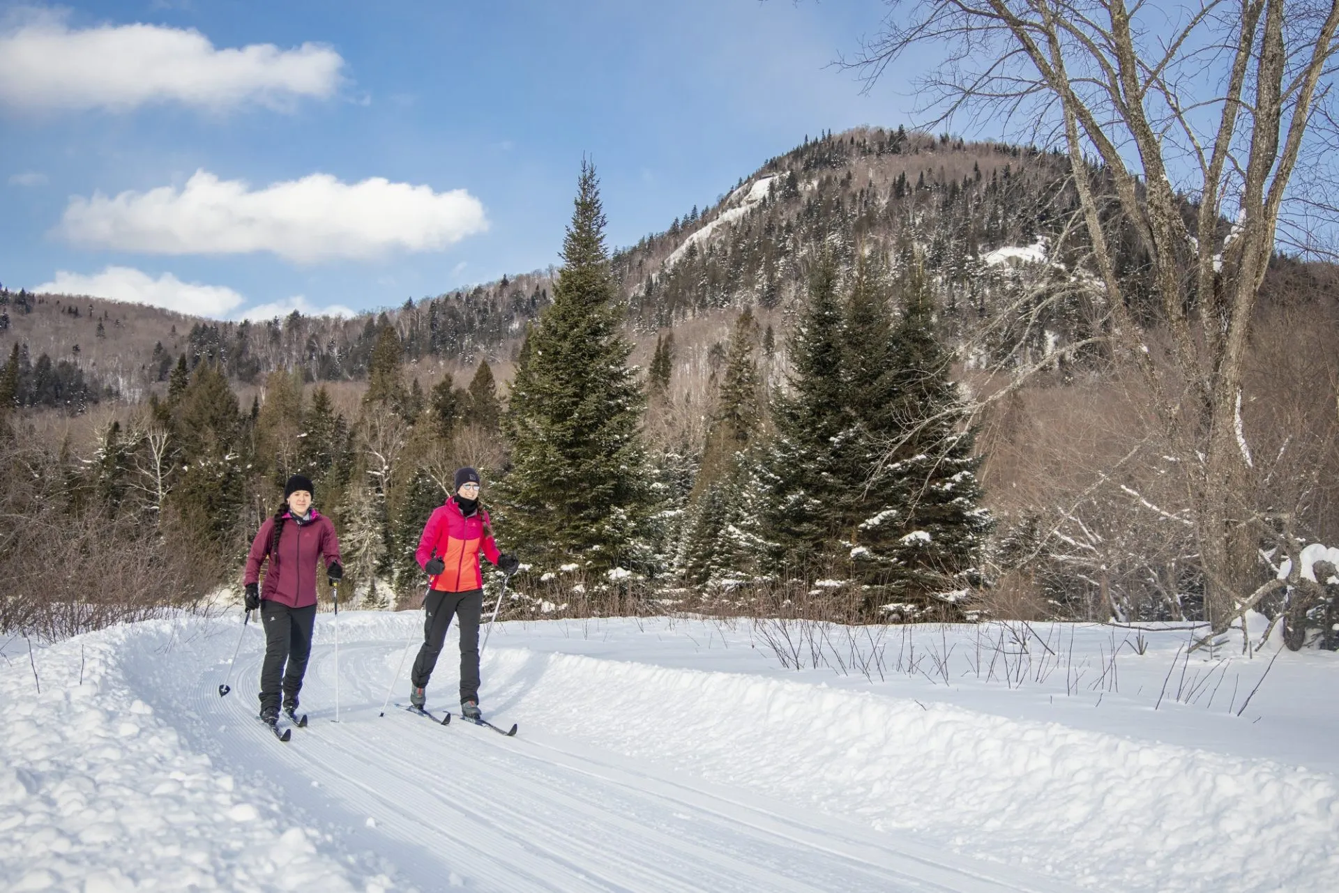 Une fois n’est pas coutume, le ski de fond sera encore l’animation vedette du parc tout au long de cet hiver. « Les pistes sont situées dans un environnement forestier. On ressent vraiment la grande nature en ski de fond, c’est ce qui fait notre charme. En ski de fond comme en raquettes, on a aussi de très beaux belvédères avec notamment la vue sur le lac Monroe au sommet », souligne Mylène Pronovost.