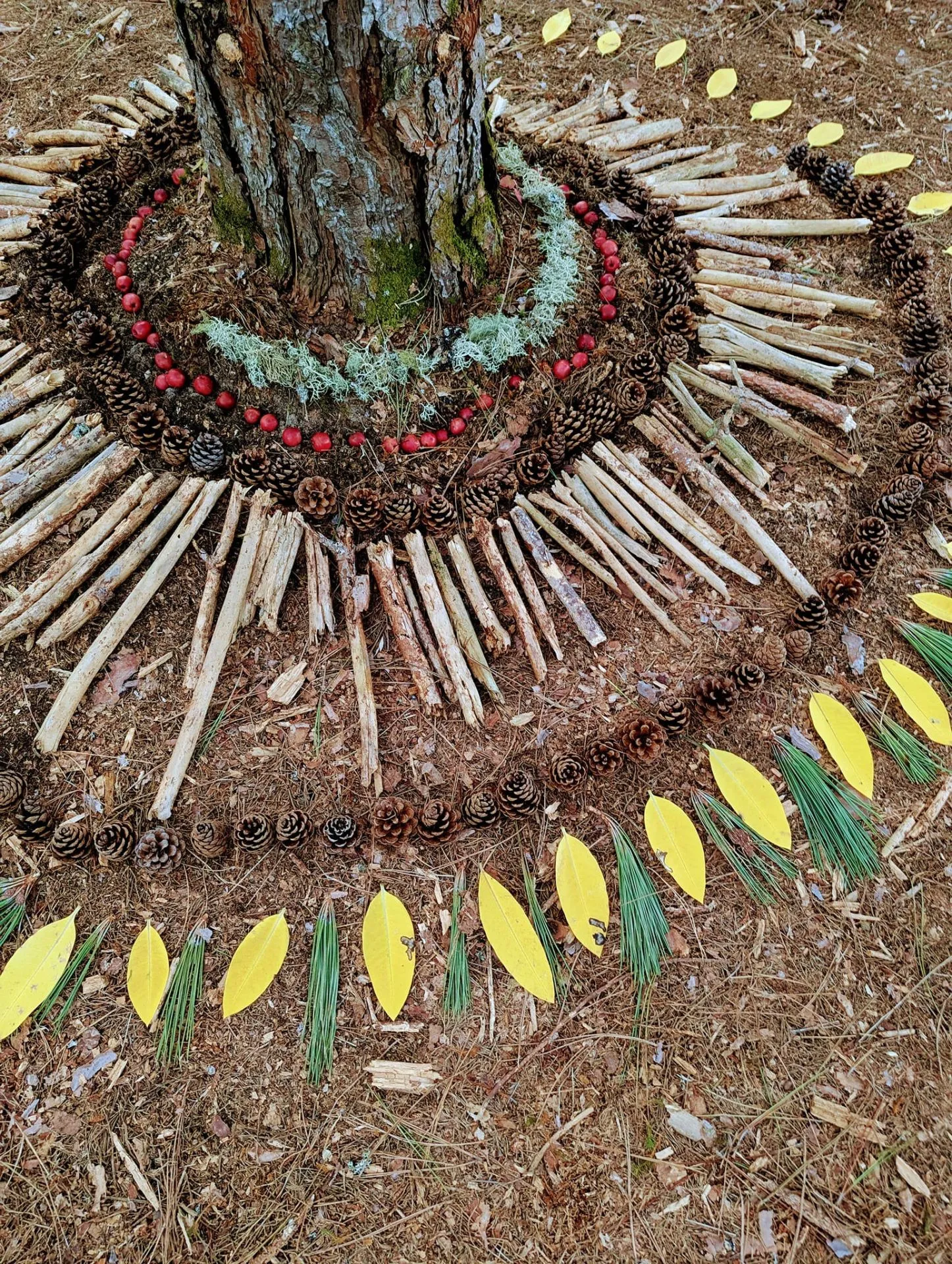 Les enfants sont initiés au land art, une discipline qui consiste à créer une œuvre éphémère à partir de matériaux trouvés dans la nature. Photo gracieuseté La tribu des pieds nus.