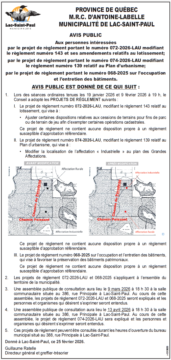 Avis public – Lac-Saint-Paul